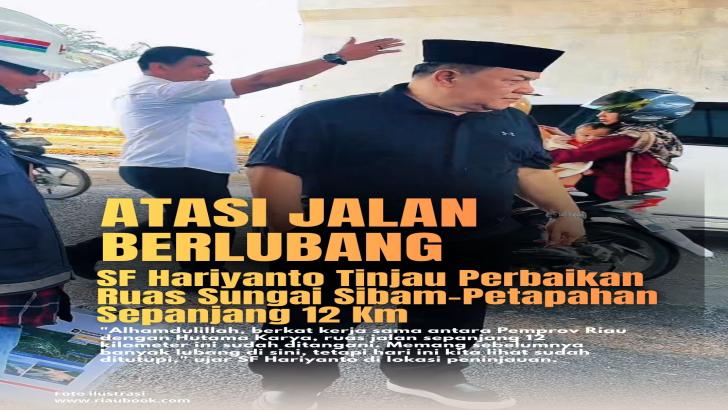 RIAUBOOK.COM - Pelaksana Tugas (Plt) Gubernur Riau, SF Hariyanto, melakukan peninjauan langsung terhadap proses perbaikan ruas jalan lintas Sungai Sibam – Pantai Cermin – Petapahan pada Sabtu (14/03/2026).